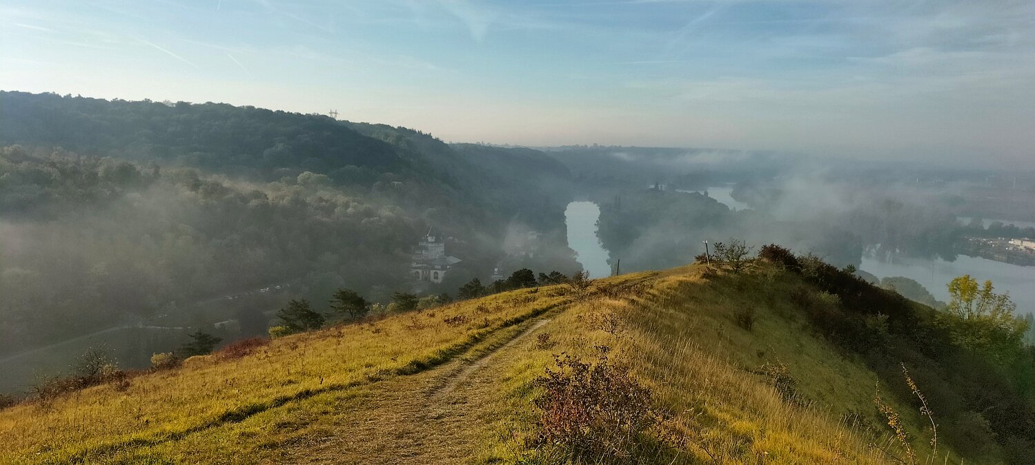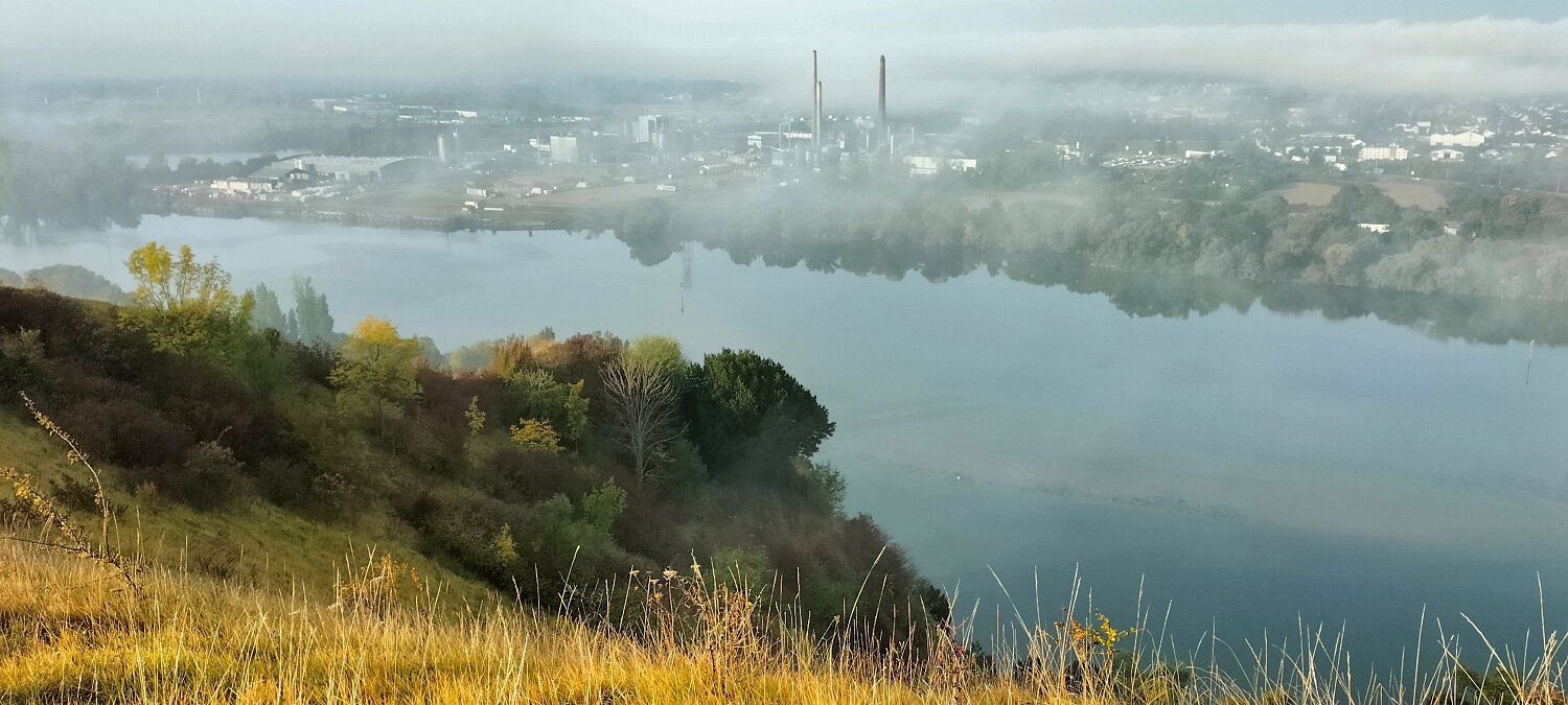 Boucle de 10 Km Plus de détails : clic ici 6 personnes ce matin. St Étienne-du-Rouvray dans la brume. Ça se lève vite. On se repère :-) En bas, La Seine En bas, St Adrien Vue vers Igoville Vue vers Sotteville-lès-Rouen A droite, Oissel 16-10-202518-09-2025