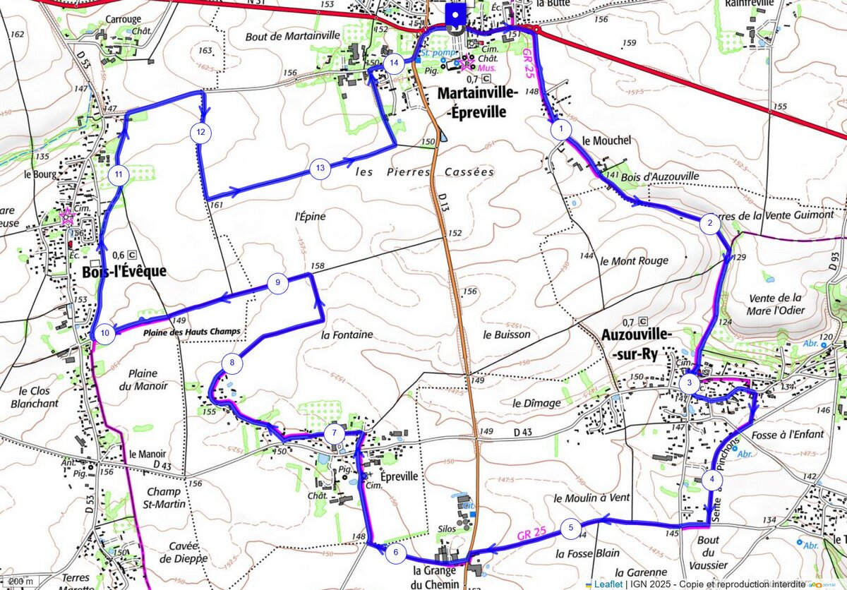 14,4 KM en sens horaire Plus de détails : clic ici 8 personnes au départ ce matin Bon train ce matin :-) Et Nelly se détache ! Église d'Auzouville/Ry Église d'Auzouville/Ry Mairie d'Auzouville/Ry Cliché Jean Cliché Jean 15-05-2025Château Martainville