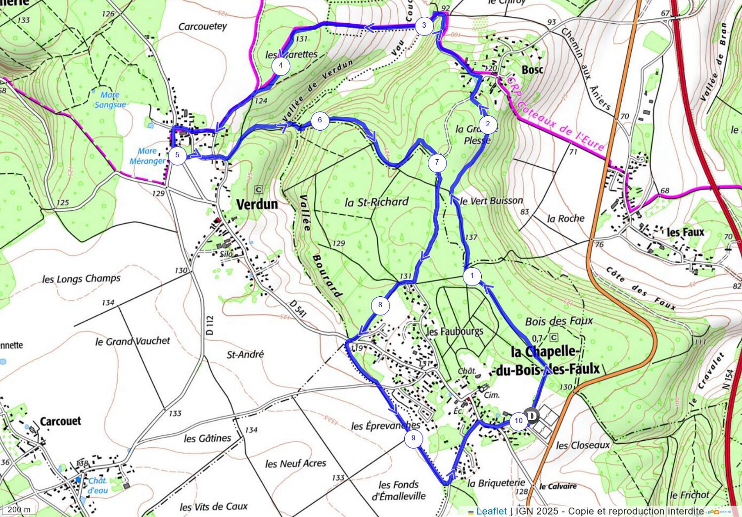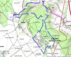Boucle au départ de La Chapelle-du-Bois-des-Faulx 10,1 Km via Boos, La Mare Méranger, le Bois St-Richard, les Éprevanches et retour par la Briqueterie.