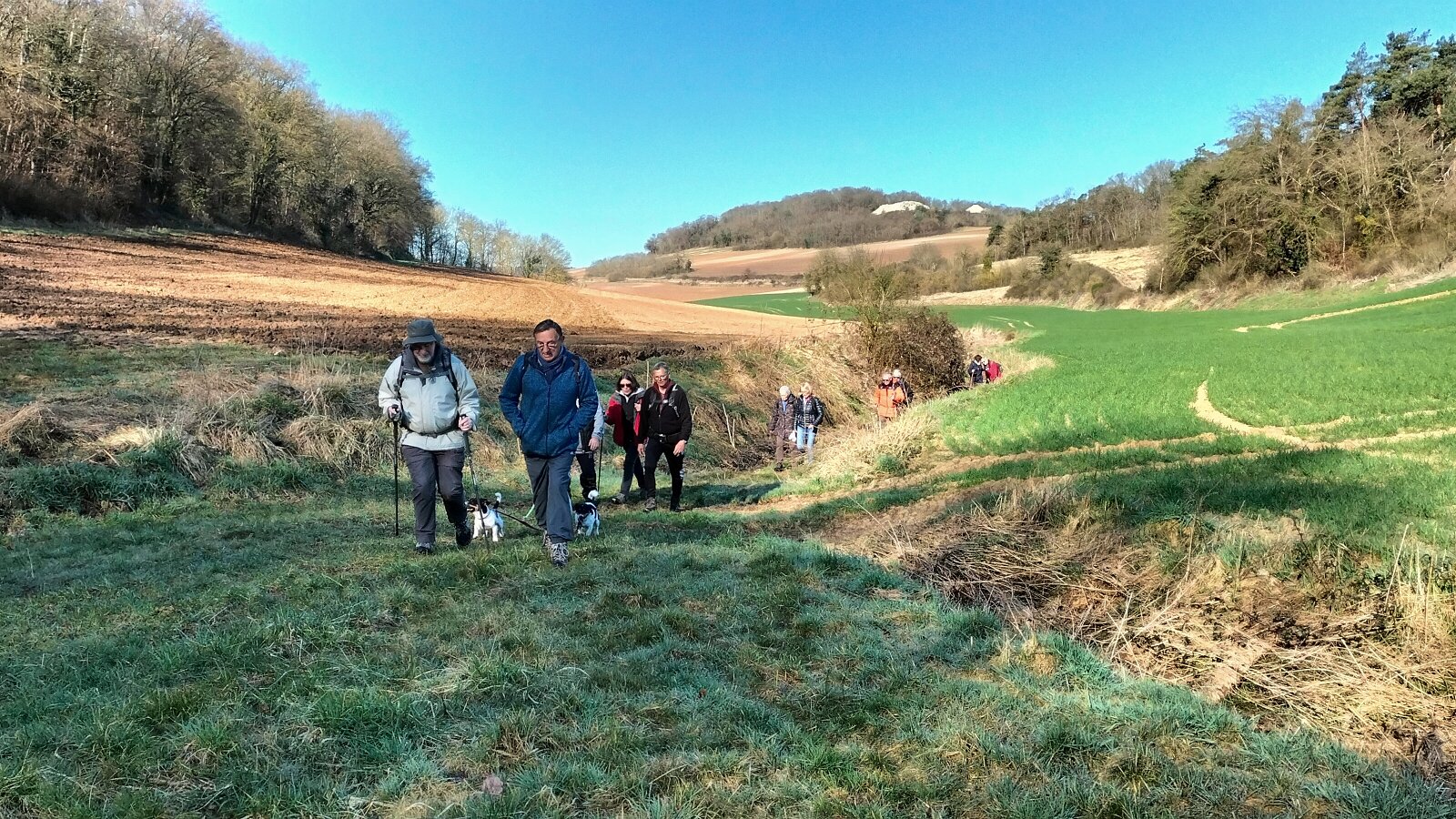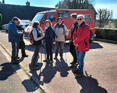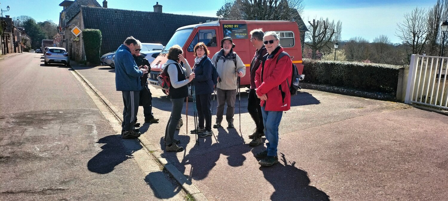12,2 KM en sens anti horaire Plus de détails : clic ici Au départ, p'tit endroit pique-nique Mairie de Chambray Bon rythme pour 13 personnes ! Au fond, Chambray Estafette Renault Futur champ de tournesols IL y a 3 semaines, c'était rempli d'eau ! Vallée Bance Presque dernière grimpette. Café, thé et p'tits gâteaux :-) Ici ça trainaille Et là ils prennent le large ! Au loin Autheuil-Authouillet Arrivée parking de La Poste Château Martainville06-03-2025