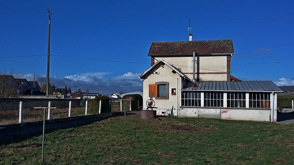 Arrivée, et départ aussi, place de la mairie à Champenard.