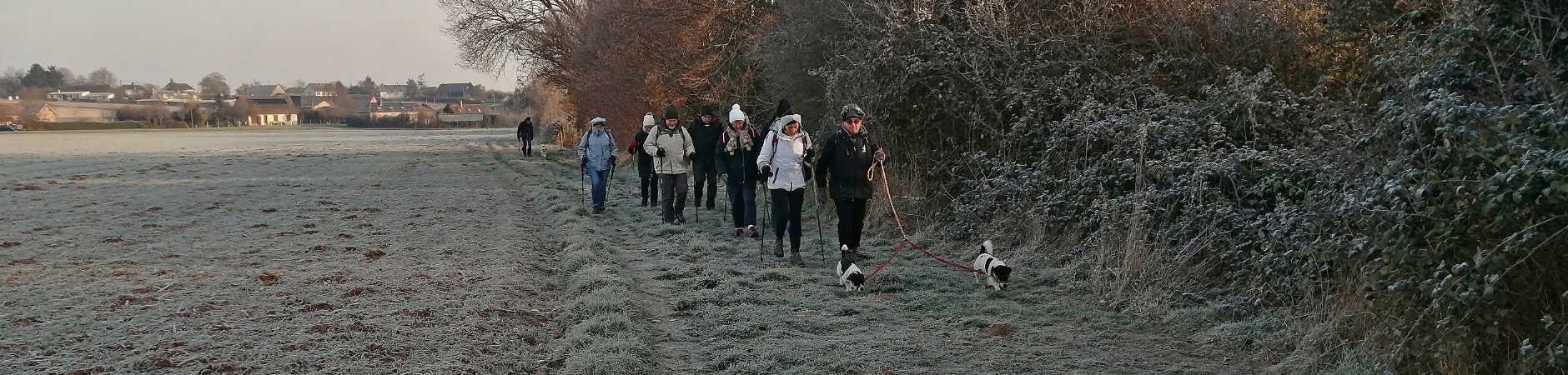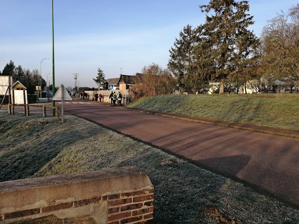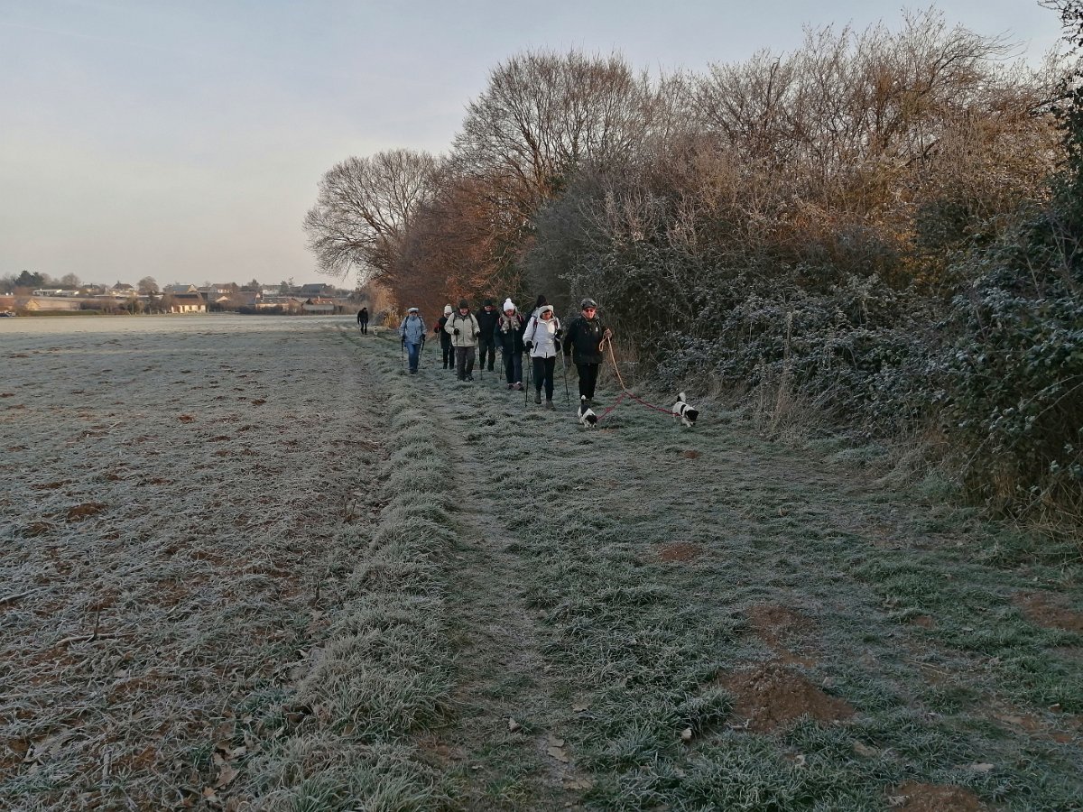 11,7 KM en sens ant-horaire Plus de détails : clic ici 14 personnes au départ par ce matin frisquet Église de Gouville Ça caille fort: -5 ! Gelées bien blanches On aperçoit 7 chevreuils en lisière de bois Lycée Agricole de Chambray Potager du Château de Chambray 23-02-202312-01-2023