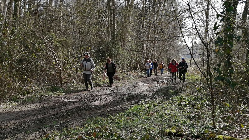 Plus de détails : clic ici 13 personnes au départ ce matin Quelques endroits boueux Un peu de brume Nous entrons dans le Colombier Entrée Château du Champ de Bataille Pause café et p'tits gâteaux Direction Chine ? La brume se dissipe 11-04-202407-03-2024