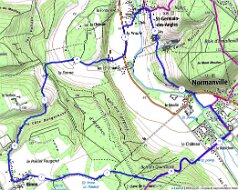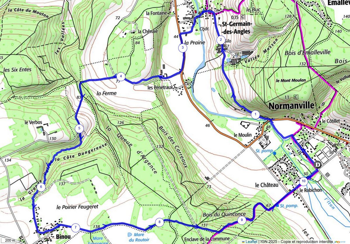 10,3 Km en sens anti-horaire Plus de détails : clic ici Départ de Normanville Y'a du boulot ! Usine à Zabu Mairie de St Germain des Angles Pause café et p'tits gâteaux Le village de Binou L'Îton Parking de la salle des fêtes Miam, miam ☺ Bon coup de fourchettes Les deux Maîtres Barbecue en action ! 24-07-202526-06-2025
