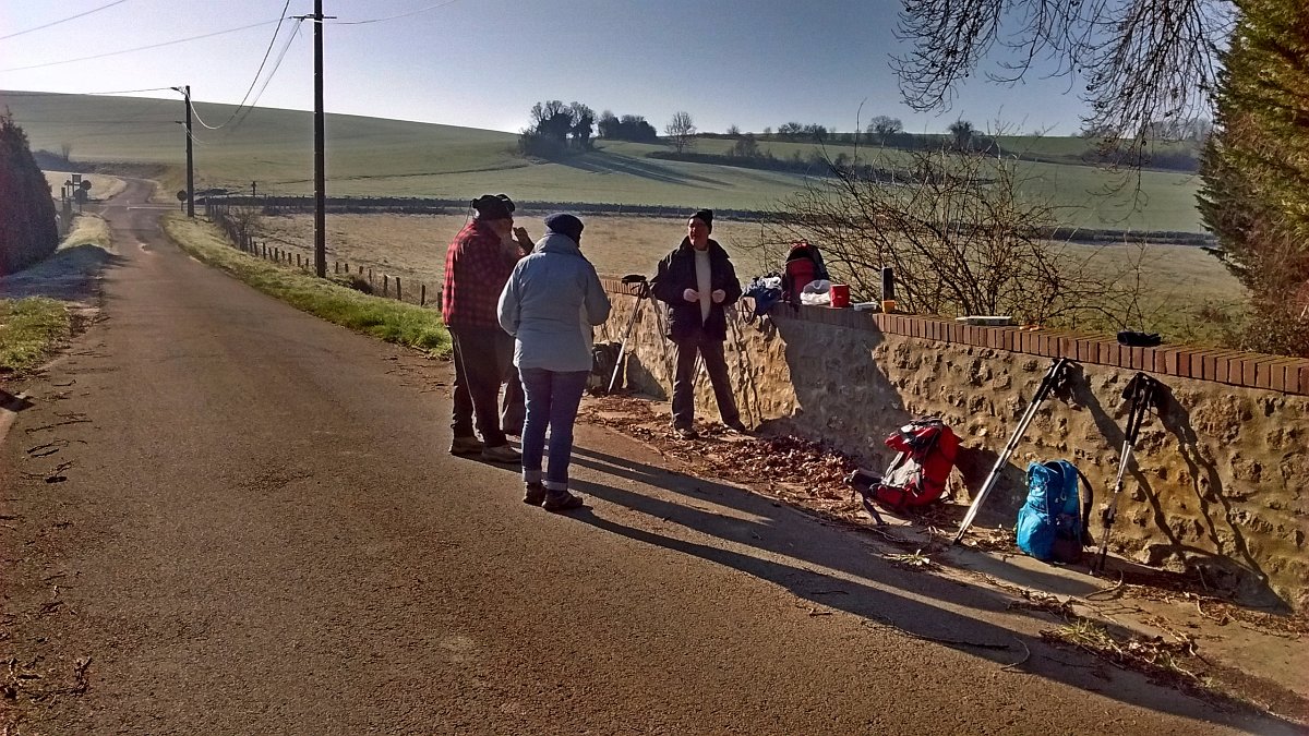Gelées blanches et moins 5° ce matin. C'est parti pour 17 kms. Toujours le même rituel: café, thé et p'tits gâteaux ! Gelées blanches C'est un puit au Vieux Château Débroussailleuse... marque LAMA Une autre débroussailleuse Vieux Château Au fond Ivry la Bataille Golf Hersant Golf Hersant Va falloir ruser pour pas se mouiller les pieds ! Y'a du débit 22-10-201601-01-2016